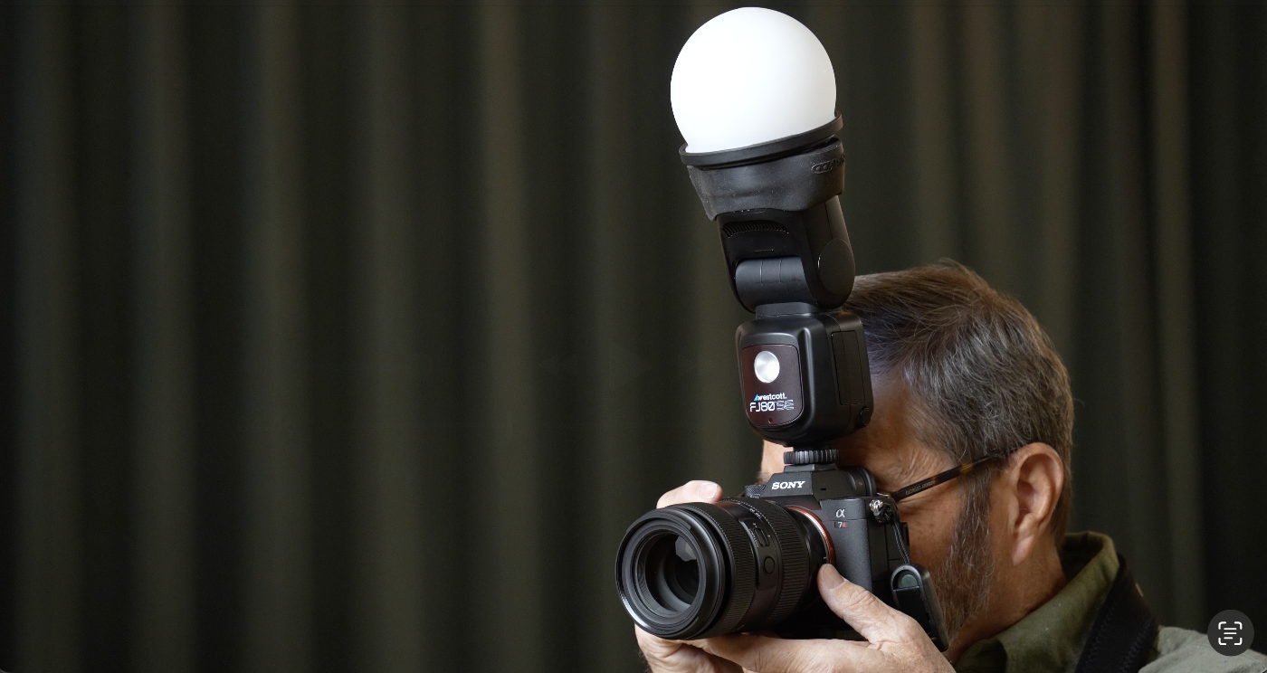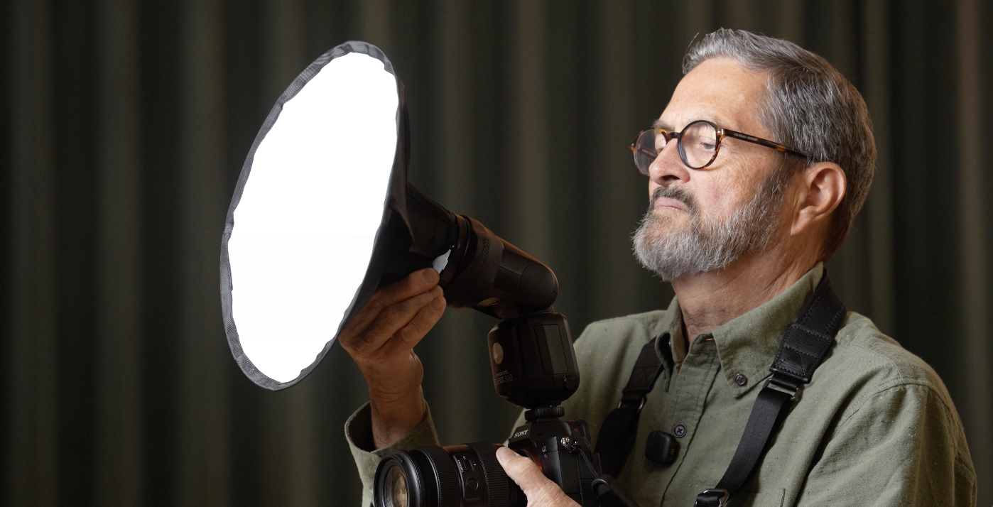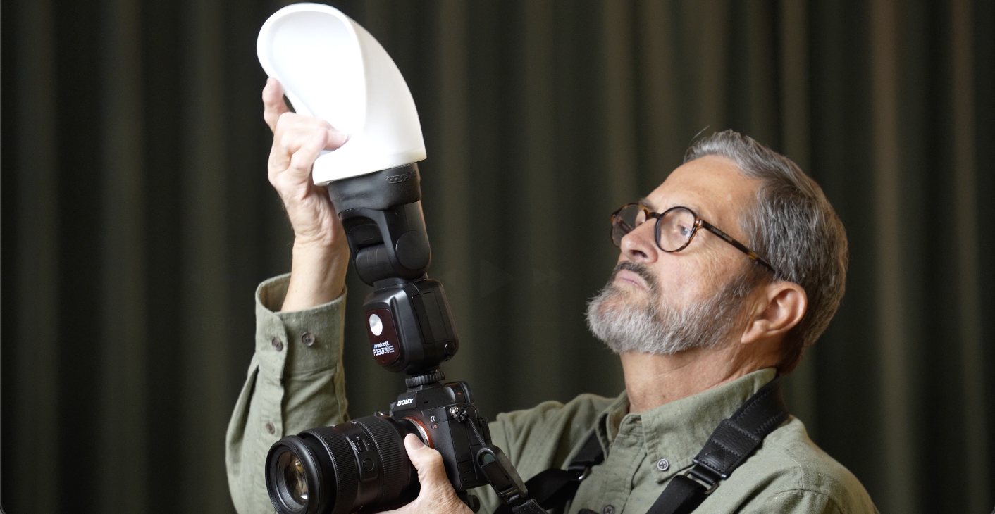 It’s just too directional. It’s too hard. And your images are not going to look very good. So, you need a softer light. You’re going to be in rooms, and that’s what we’re in right now, that have large, tall ceilings. Walls are far away. So, you cannot rely on bouncing the light off the ceiling, bouncing the light off the wall. You have to have a way to modify the speed light that is with you, that is on the speed light. So, we’re going to look at those options, options that are on the speed light that soften the light and give you a pretty light.