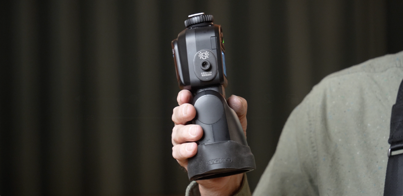 It’s an easy way to get this out of the way. It works best with these kind of smaller modifiers. So you can either use the one from MagMod or use this Diffusion Dome. Those are the two that work the best. Doing this doesn’t really work. Obviously, the bracket doesn’t work for this and the small softbox doesn’t work for this because it’s just too big on your hip. But this is a great way to work because it just gives you so much control. And when you get in close to wall, you can still bounce it off the wall. You can double bounce it and it just gives you a beautiful light. So, here we go. It’s a little under light. It’s a horror light. Scary. Yes, it is a horror light. But it just makes it so much easier to use.